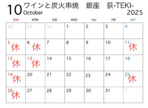 10月の定休日のお知らせです。