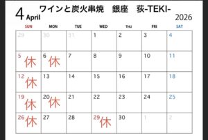 4月の定休日のお知らせ…